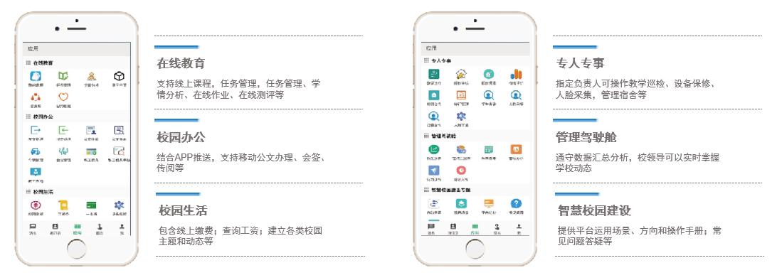 高校手機APP是為滿足中高職學校教育需求而開發的一款移動端應用程序。該應用程序旨在為中高職學校師生構建多維立體的交互平臺,服務貫穿招生服務、溝通交互、教學教務、學生管理、在線教育、校園辦公類、校園生活等全方位的校園服務,讓校園信息流通實時高效,讓用戶在掌上指尖輕松實現日常管理的服務。
